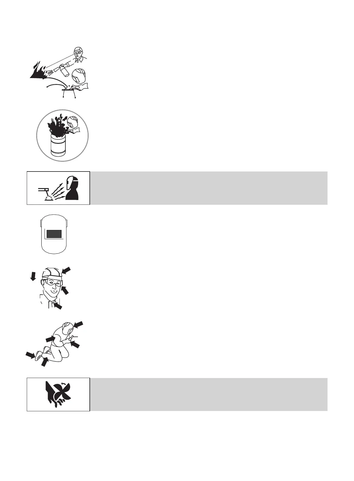 Use welding helmet with correct shade of filter (see Section to choose the correct shade).