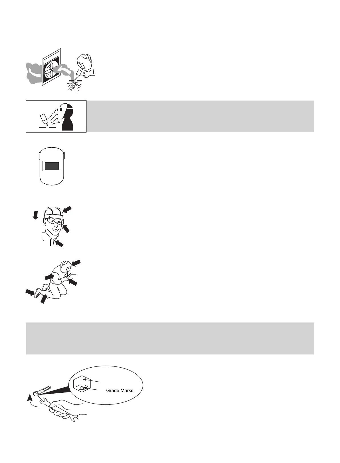 Use welding helmet or face shield with correct shade of filter (see Section to choose the