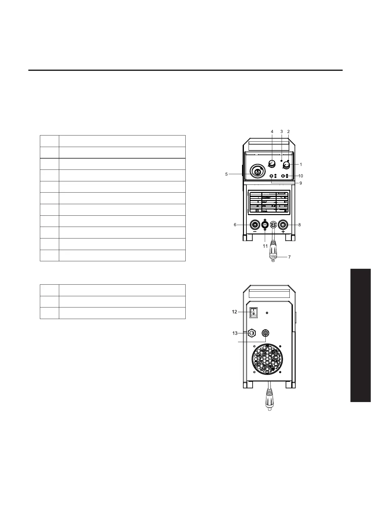 WELDPRO MIG155GD - Front Panel Layout and Controls; Back Panel Features