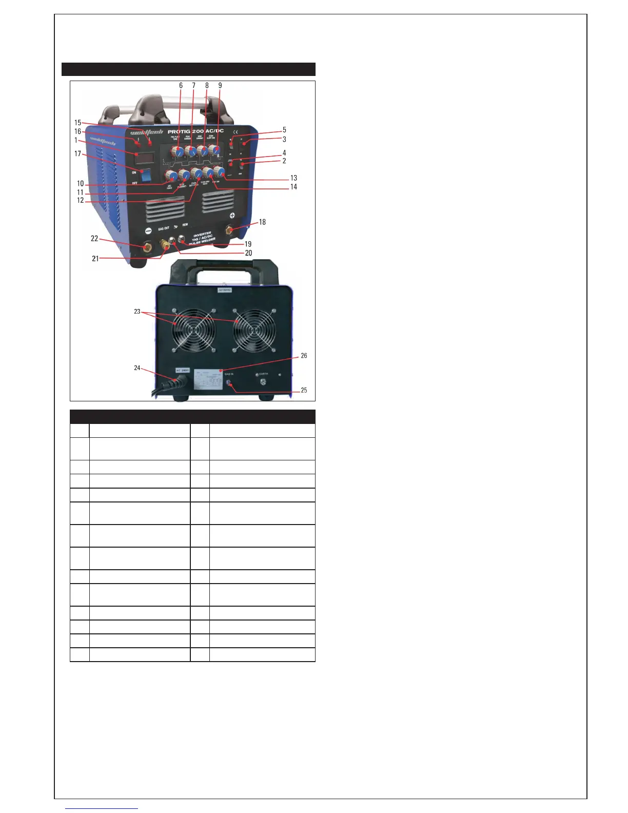4 Pulse Welding Mode Switch 17 Mains Power Switch