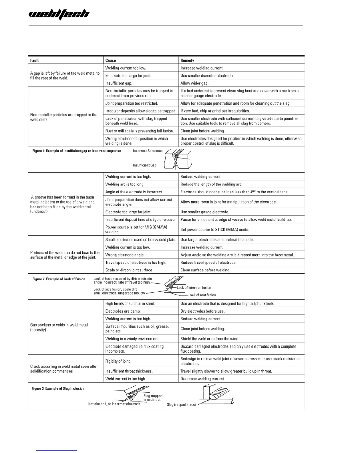 WELDTECH WT200MP - MMA (Stick) Troubleshooting; Troubleshooting Weld Fill and Particle Issues; Troubleshooting Fusion and Cracking
