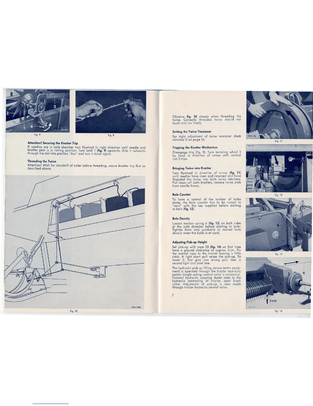 knotter geer is in resting position. Turn lolch 1 (fig. 9) upwards, slide it outwards