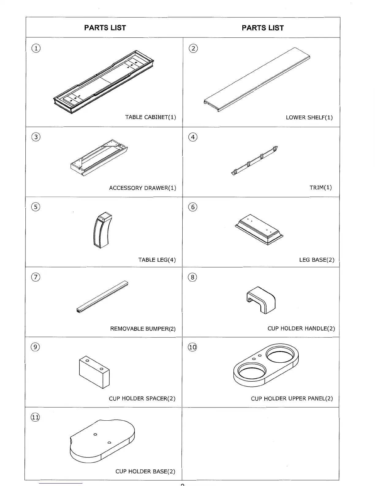 PARTS LIST PARTS LIST
