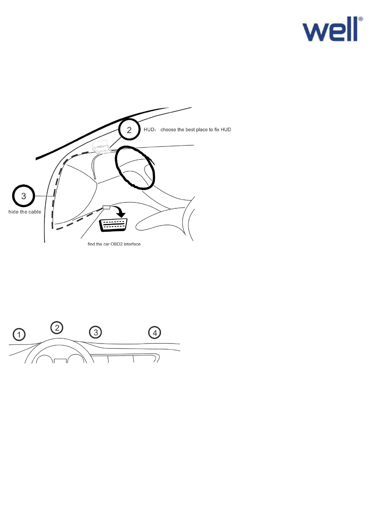 Well Vision - Installation Steps; Locate OBD Interface; Position HUD Unit; Route OBD Cable