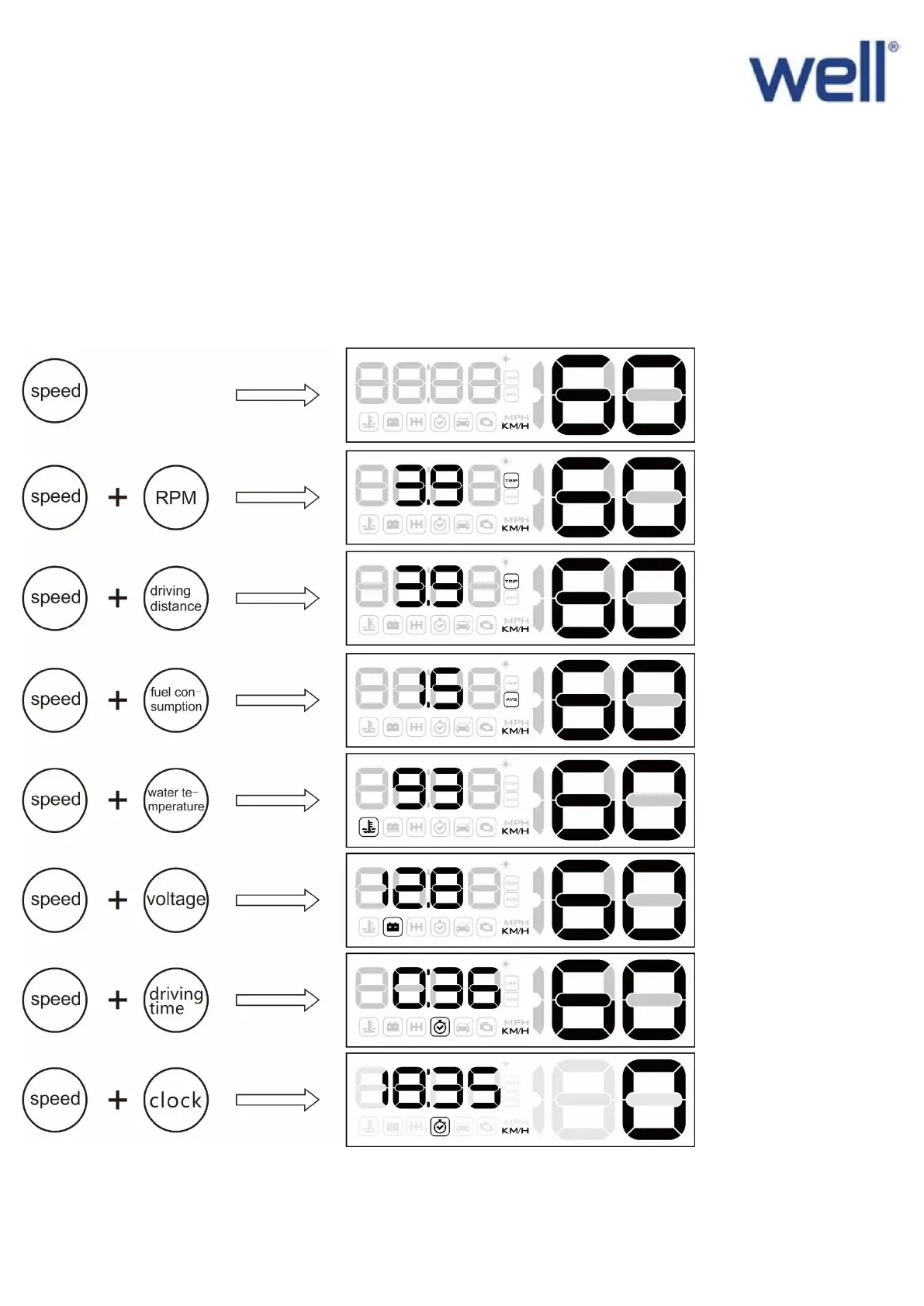 When start the engine, HUD will display, then the user can use the quick setup way to adjust the HUD