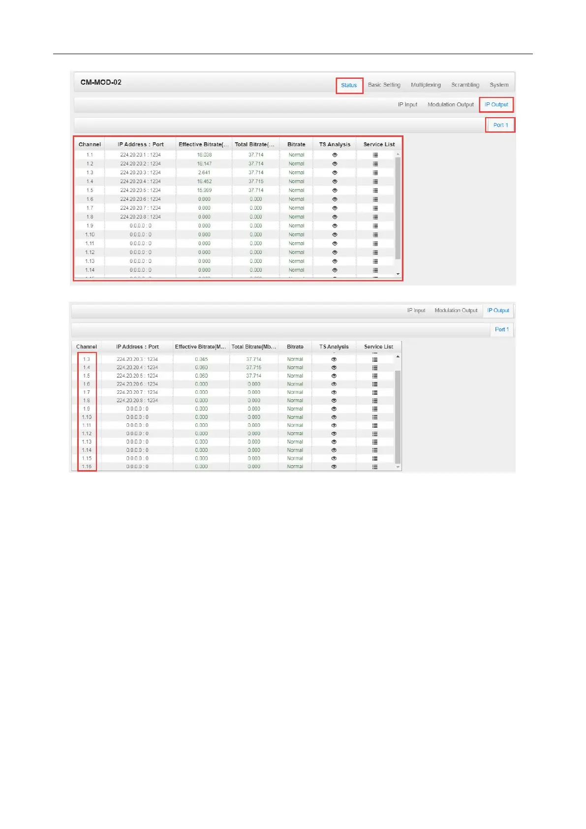 Port 1 and Port 2 have same interface. It shows the 512 channels. Check the box under Enable to