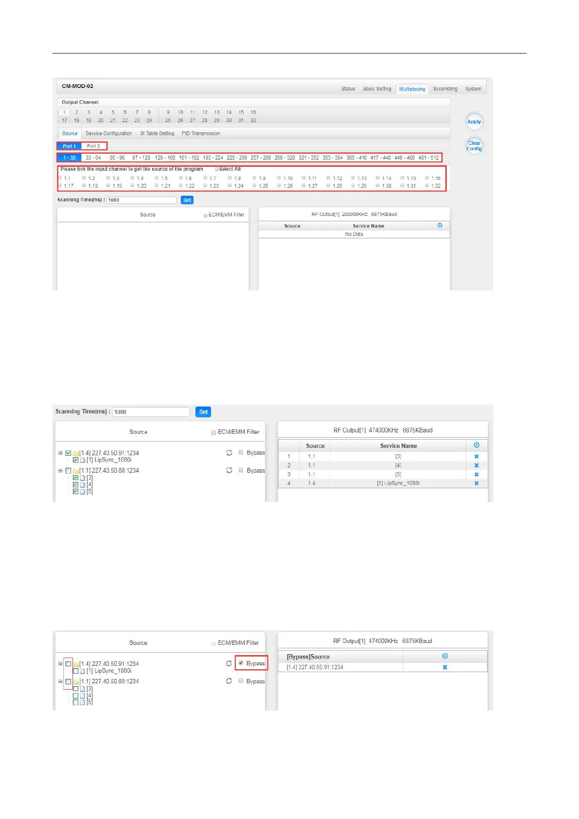 bypass 1 TS and cannot output other services from different channel sources. Bypass mode allows