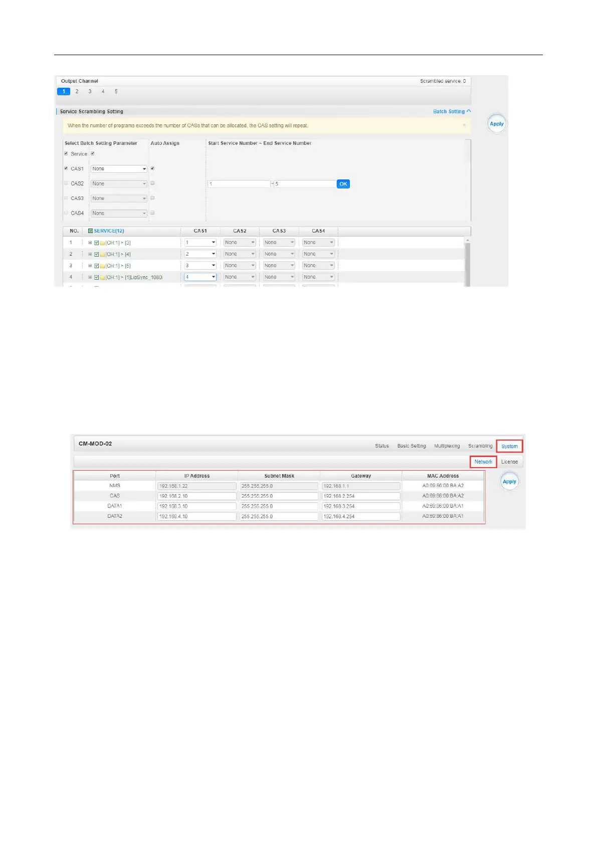 CM2-MOD-02 System is composed of two sub menus namely Network and License.