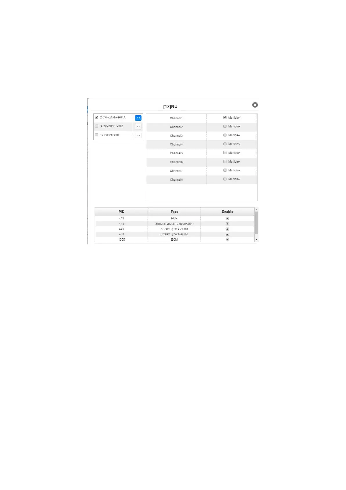 multiplexing for specific services and check the EIT multiplexing status. EIT function is enabled on