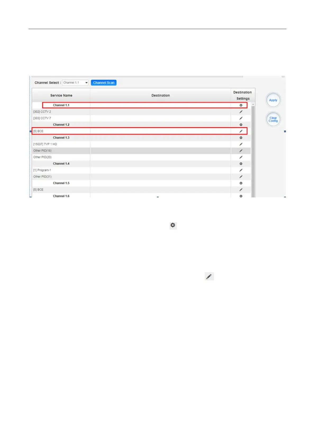 Multiplex services: You should click the service line setting icon ( ) to make the certain service