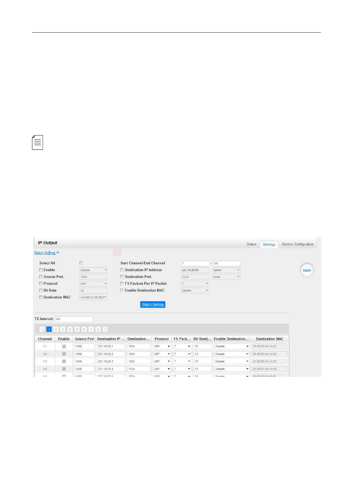 Batch Setting IP output channels is also similar as setting IP input.