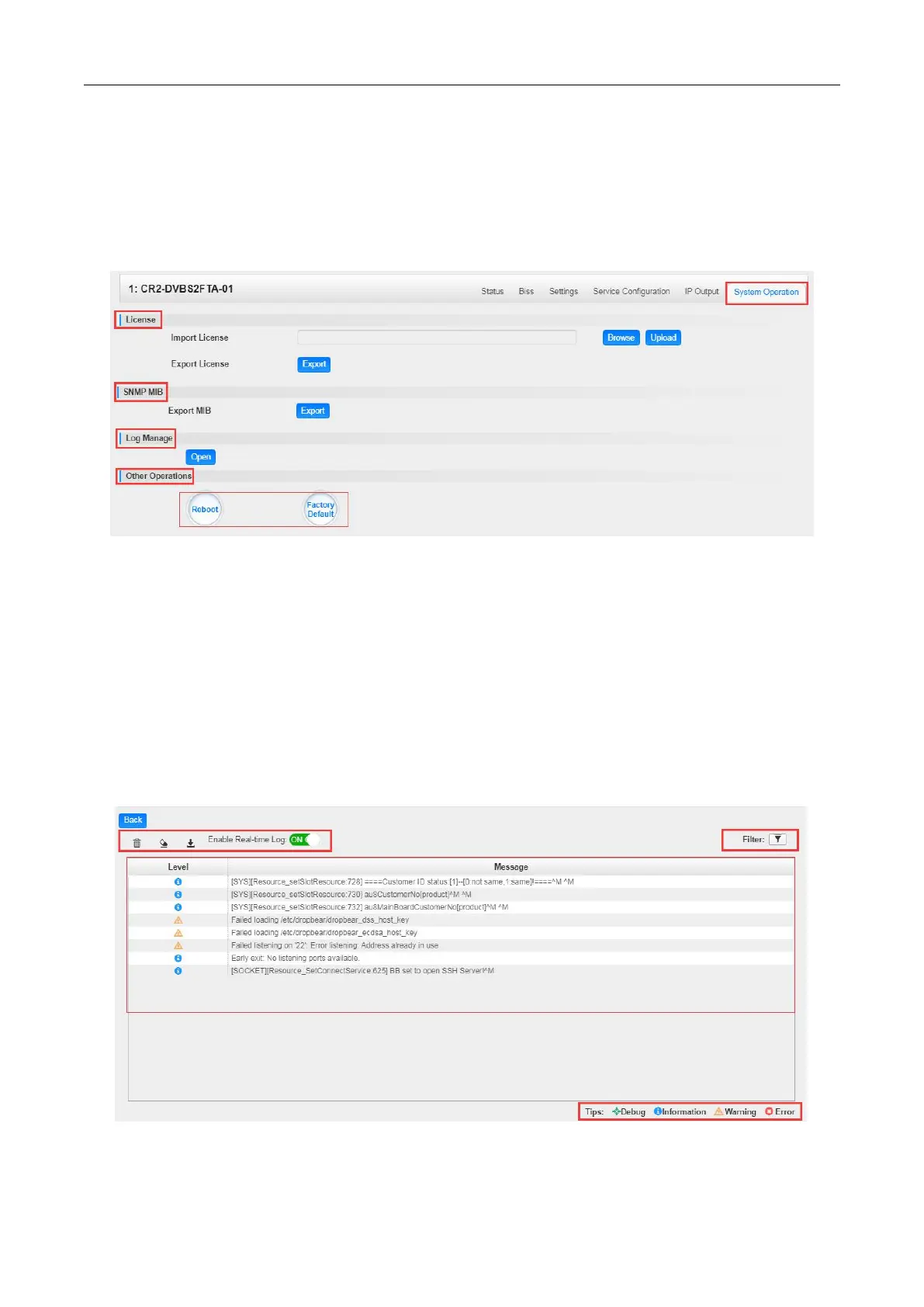 On System Operation page you can import/export License, export SNMP MIB files, Reboot