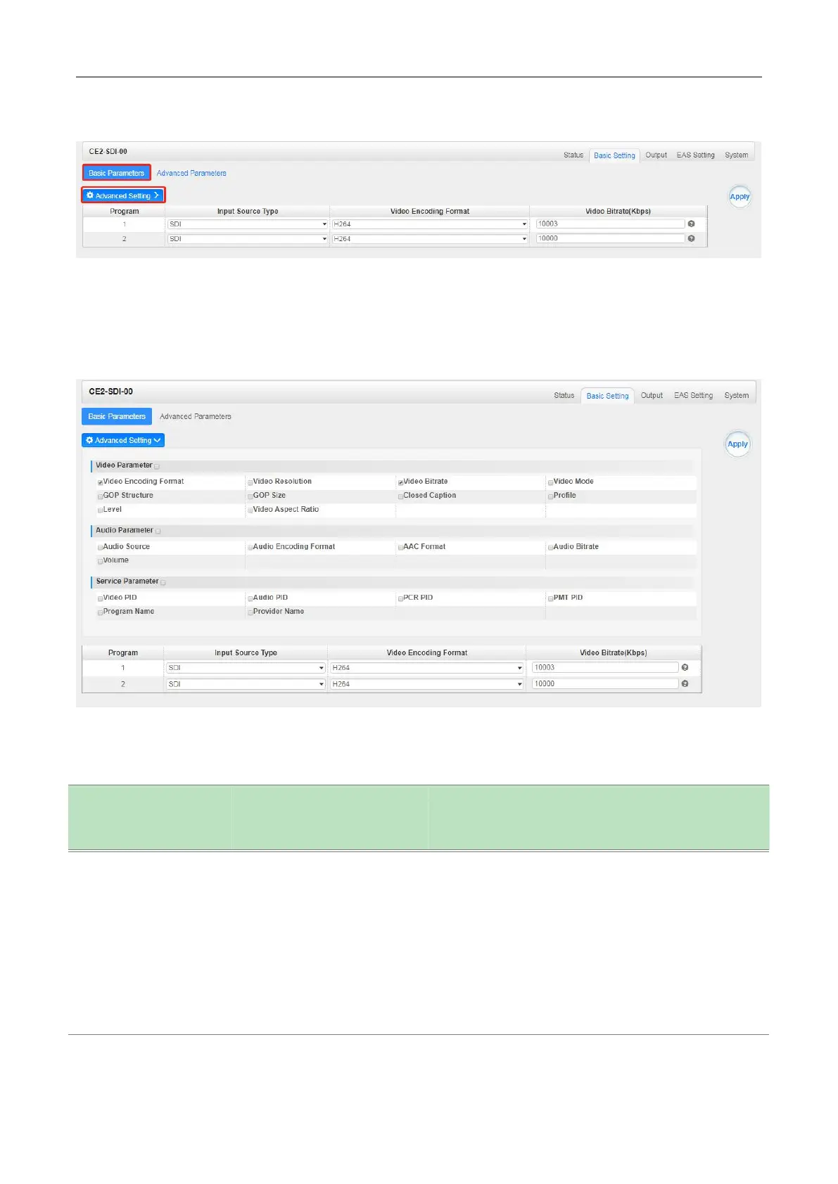 Click Basic Parameters then click Advanced Setting to see Video Parameters & Audio