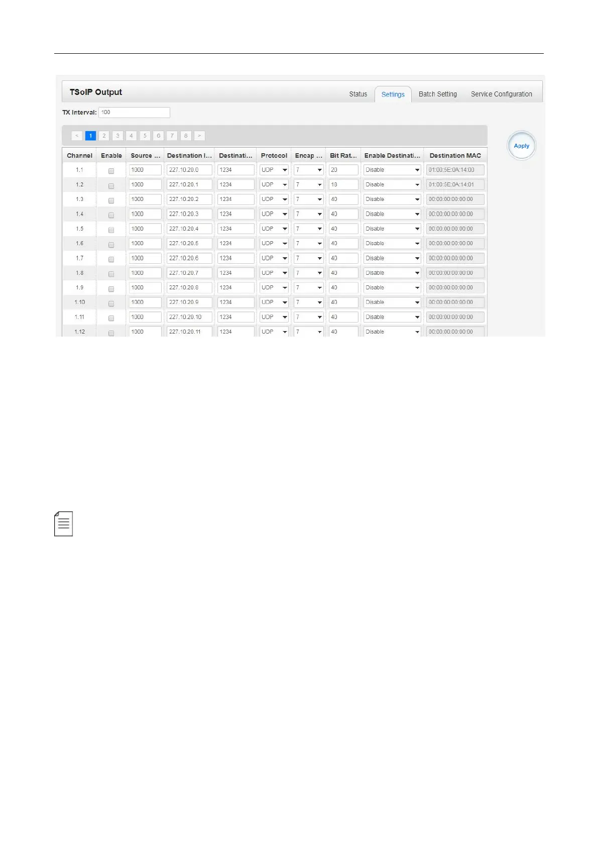 TSoIP Output >Batch Setting