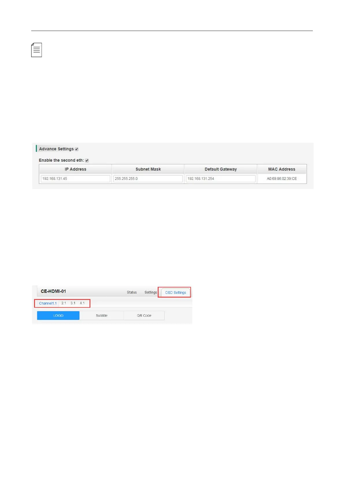 Advance Setting (only available in CE-HDMI-00):