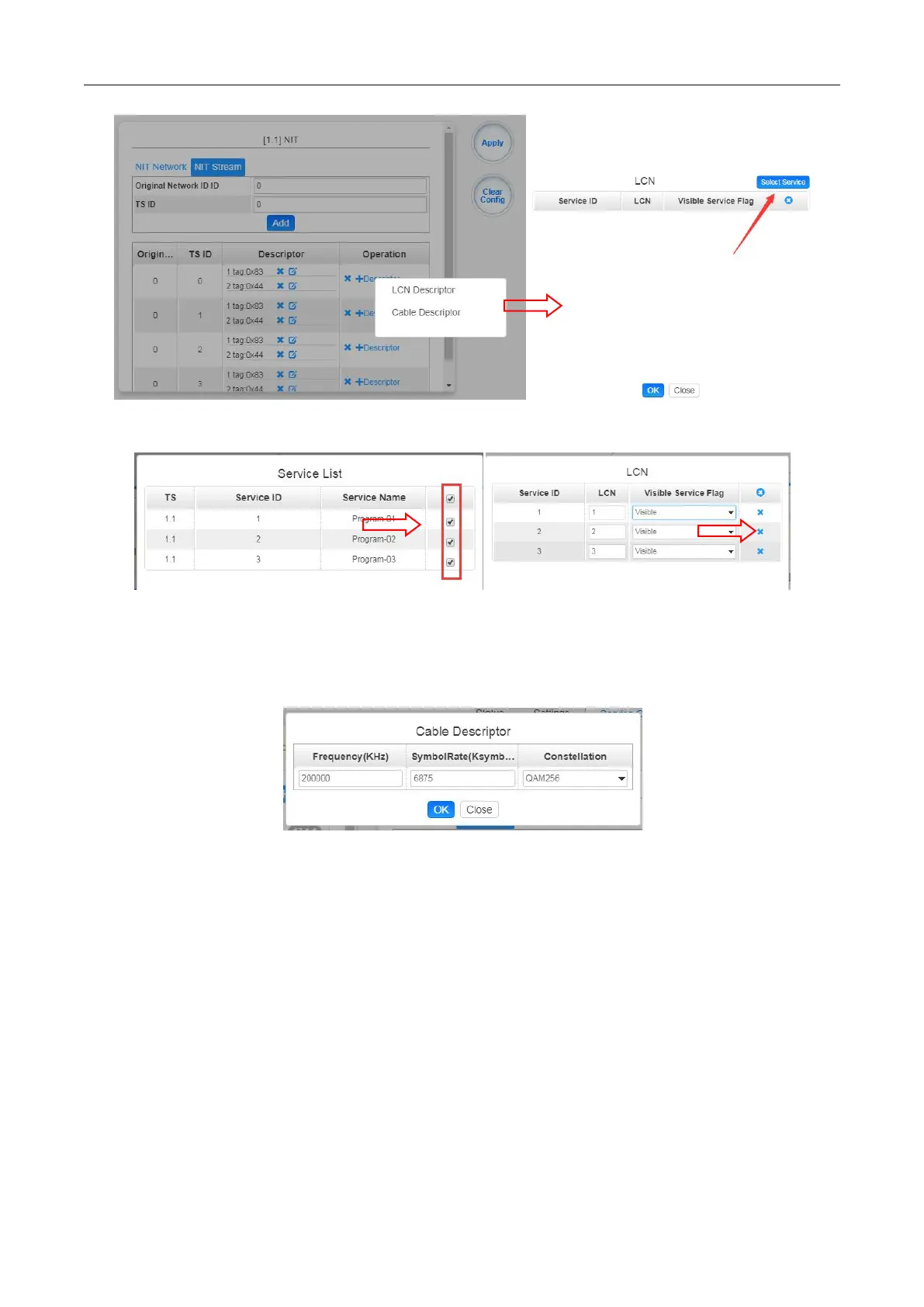 Click +Descriptor and the Cable Descriptor. Then fill in the correct frequency and symbol