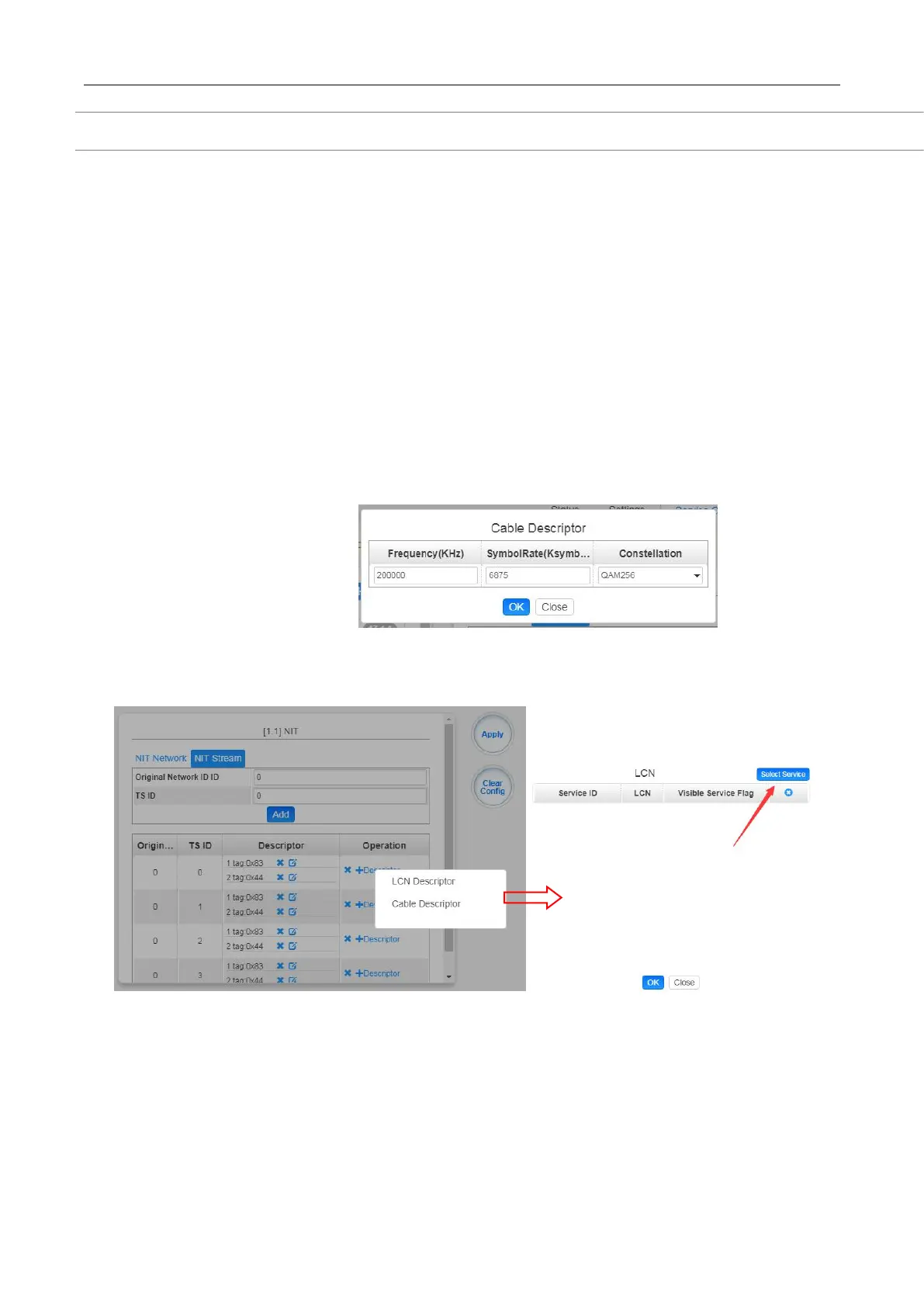 Click +Descriptor and Cable Descriptor. Then fill in the correct frequency and symbol rate