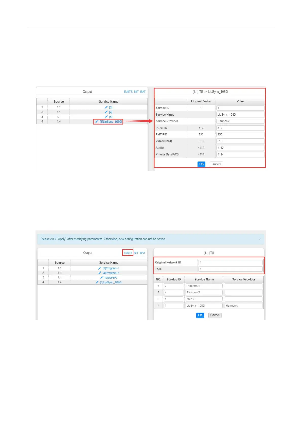 Here you can also edit the Original Network ID and TS ID of the Modulation Output.