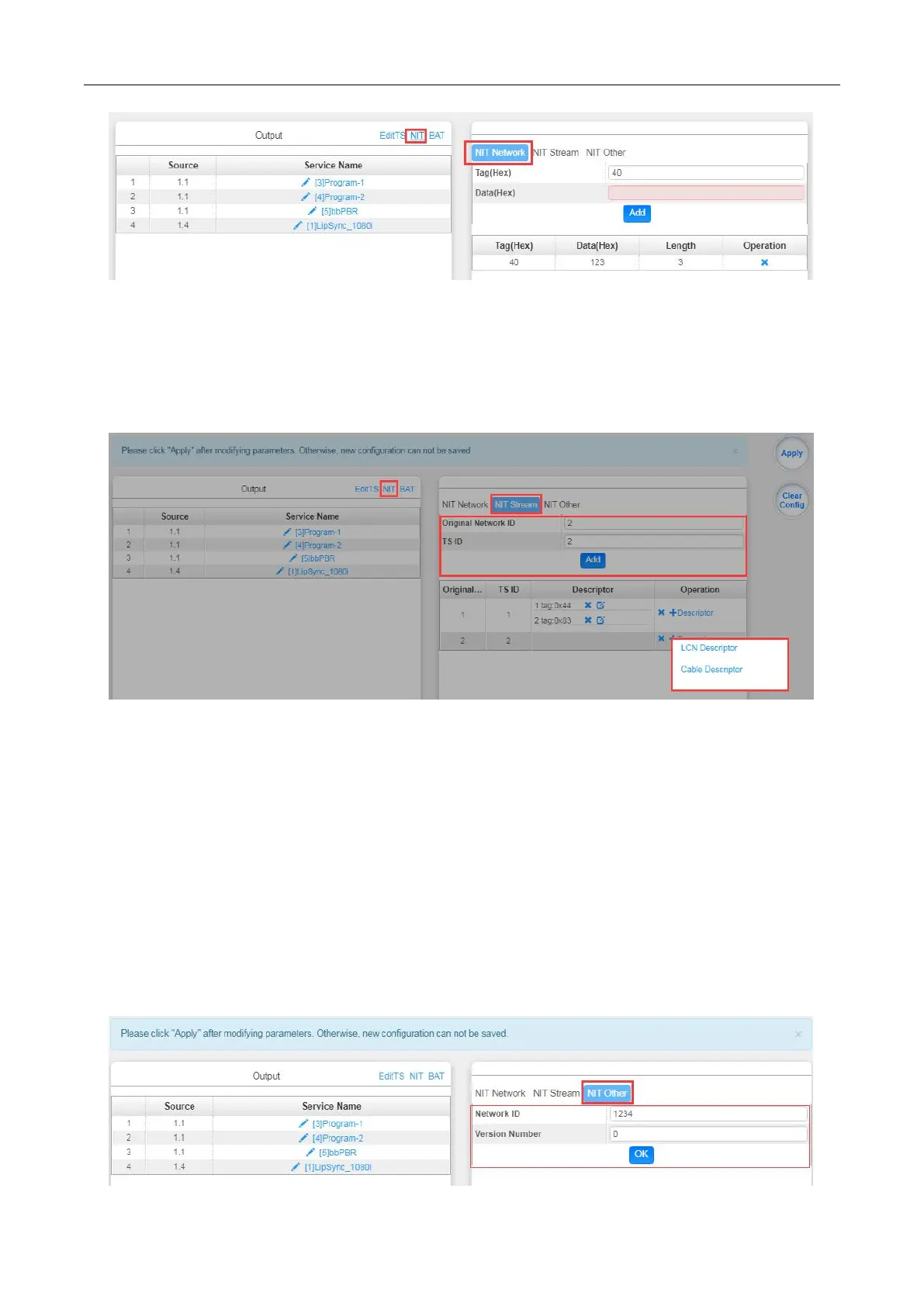 Still in NIT, you can also create NIT Streams and generate LCN for channel lists and Cable