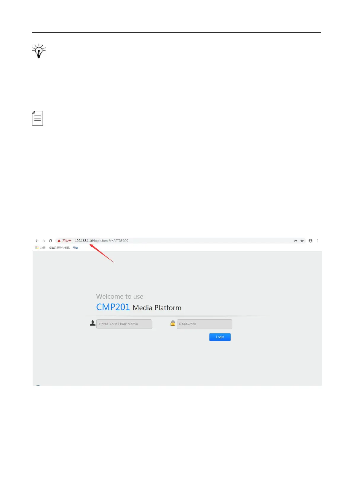later, Firefox, and Google Chrome) to access the login page. The default user name and password