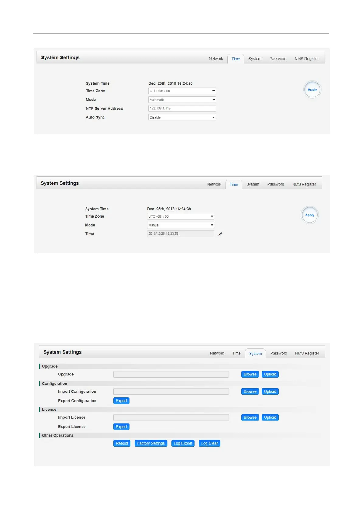 In System page you can do an upgrade, import or export configuration, import or export license (only