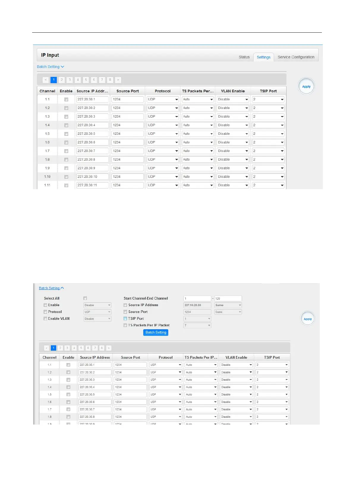 To set the IP input parameters in batch, you can check the boxes before parameters you need then