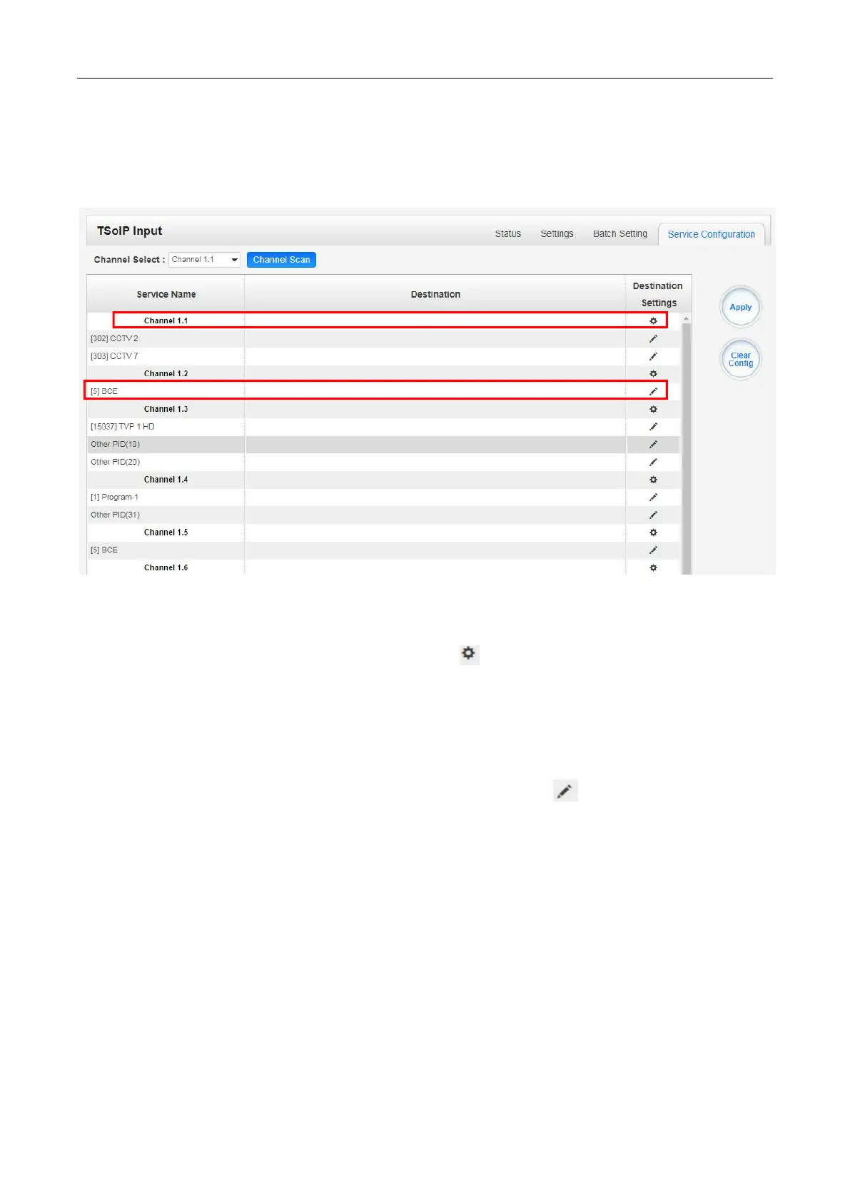 Multiplex services: You should click the service line setting icon ( ) to make the certain service