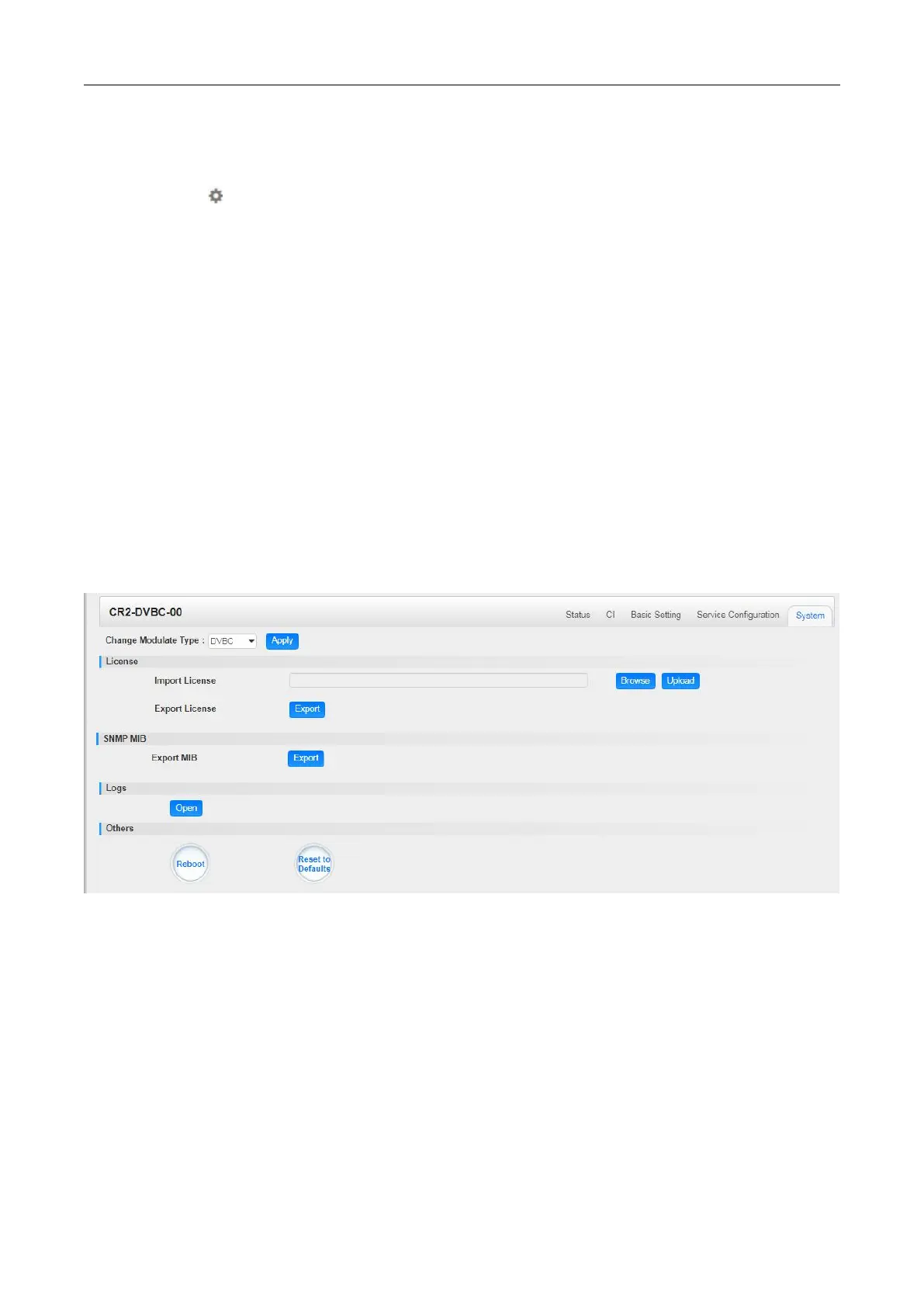 also perform Import/Export License, Reboot the module, Restore the unit to factory defaults
