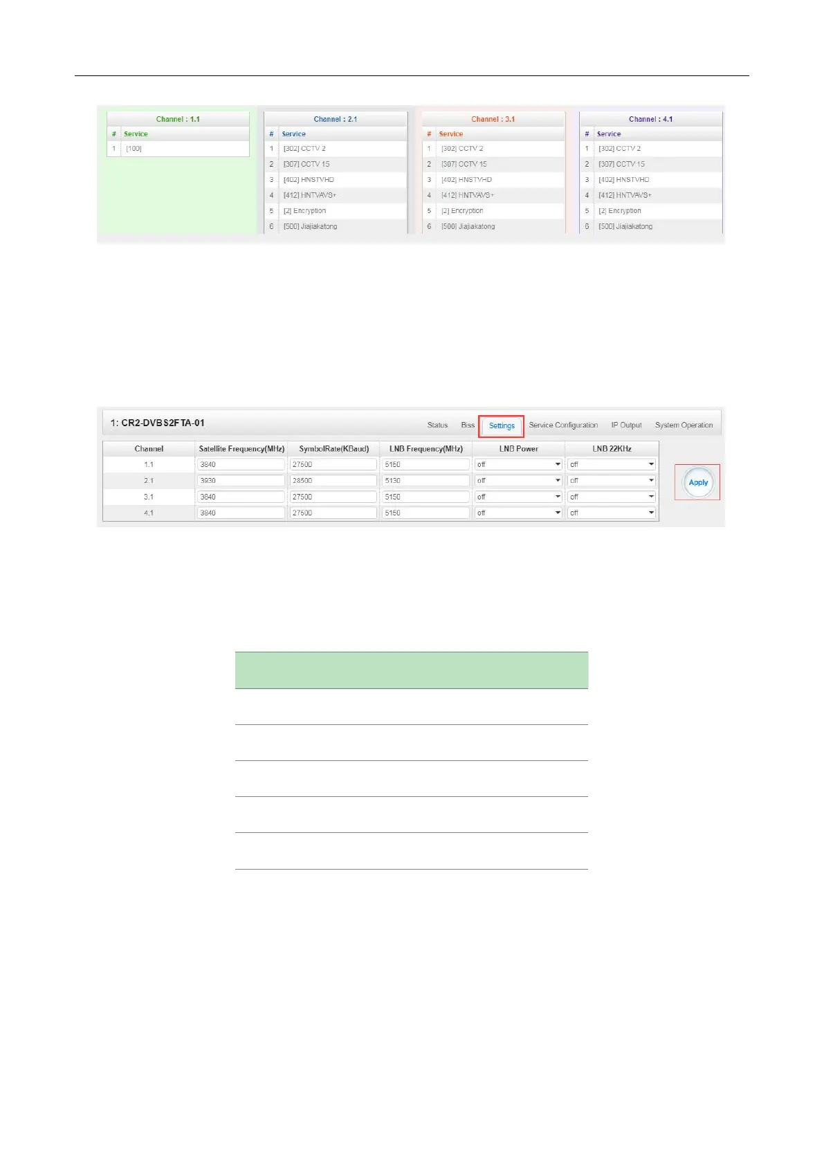 Channel 1.1, 1.2,1.3 and 1.4, 4 LNBs are powered independently.