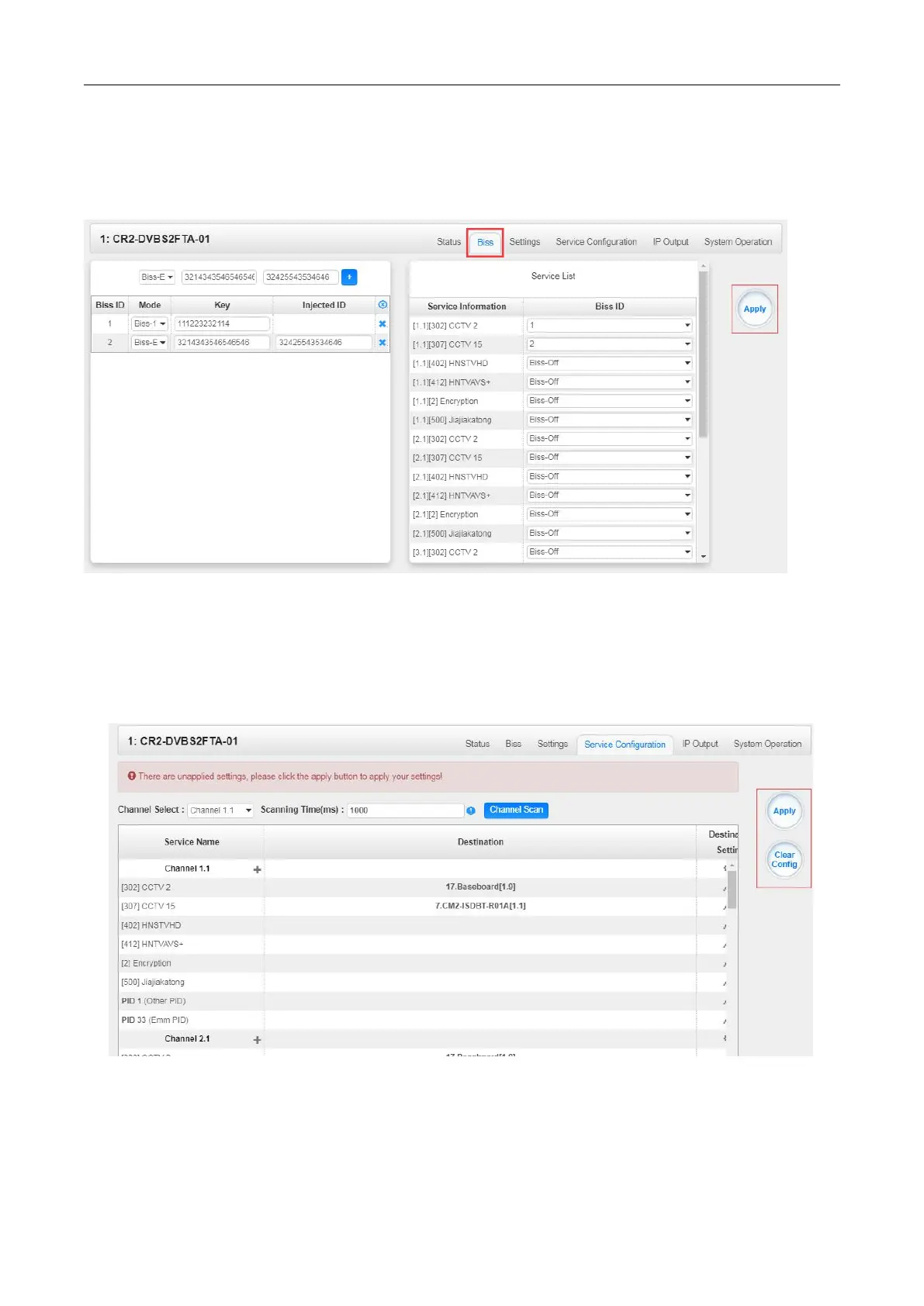 Here you can create Biss ID, including Mode, Key and Injected ID. And you can check the Service
