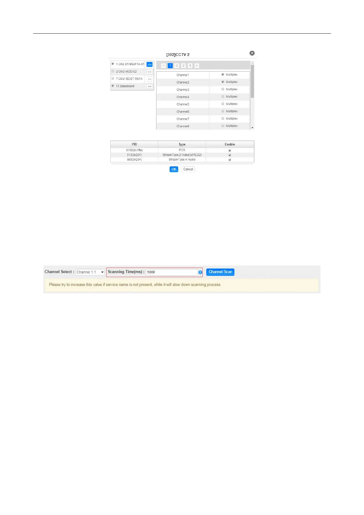 IP Output > Status> This page shows detailed status of each channel. The TS Analysis and Service