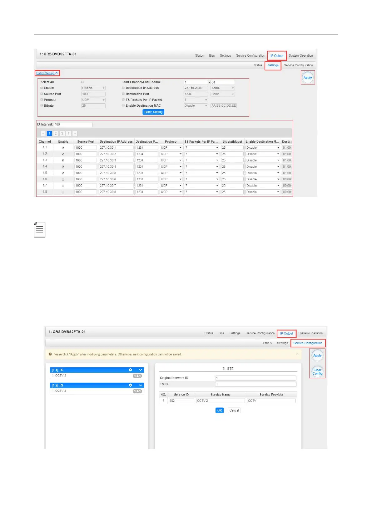 If you want to use IP output channels in the receiver module and baseboard IP output channel