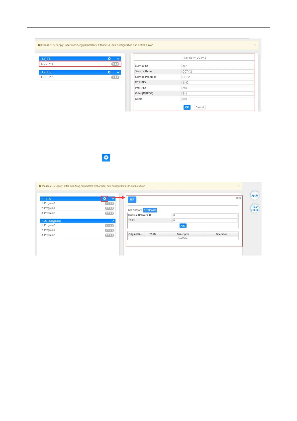 NIT setting: Click the icon to modiify NIT Network and NIT Stream.