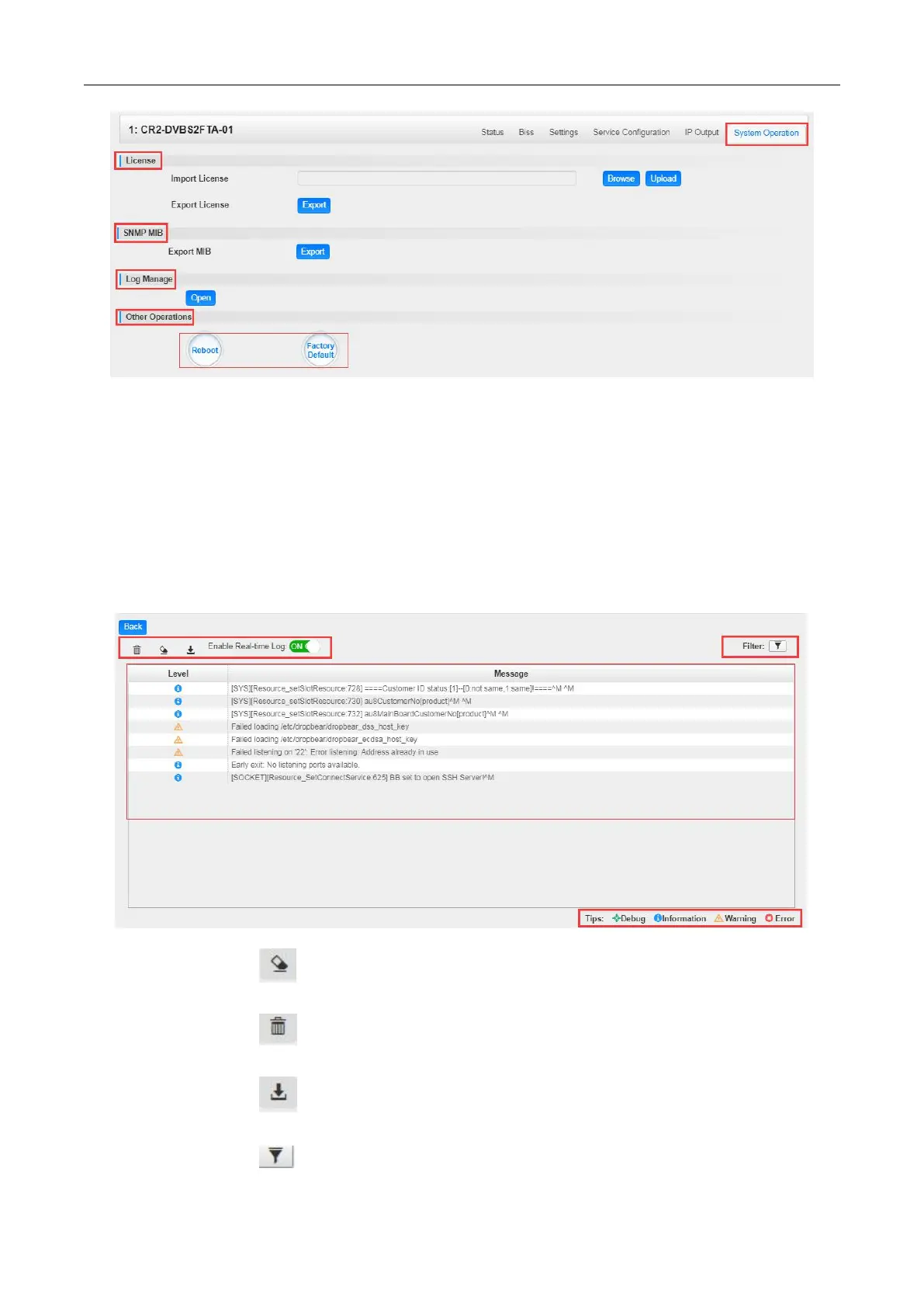Log Manage> This page shows the logs of the module. If there are issues encountered on this