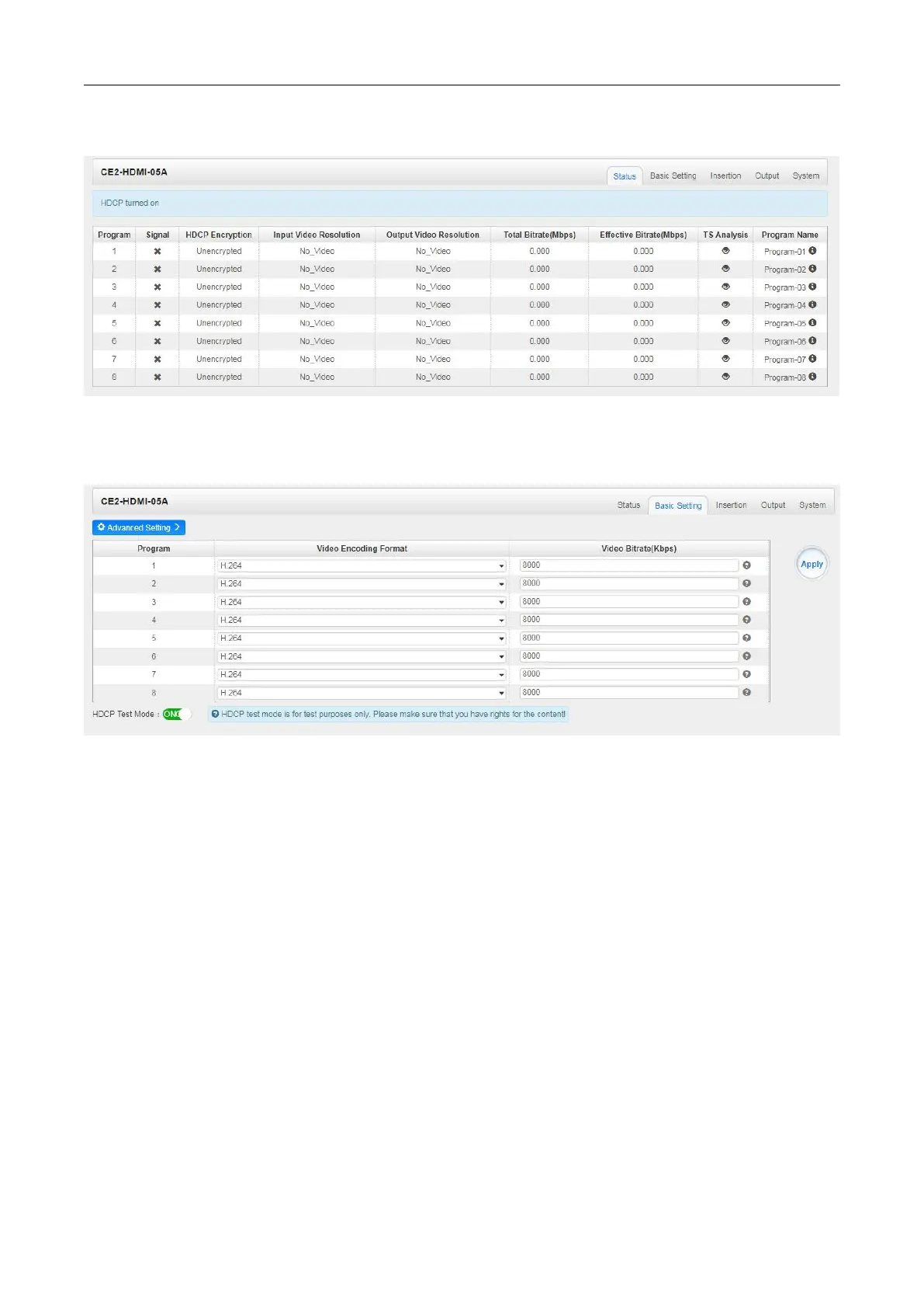 This page allows you to modify the Video, Audio and Service Parameters. Click Advanced Setting