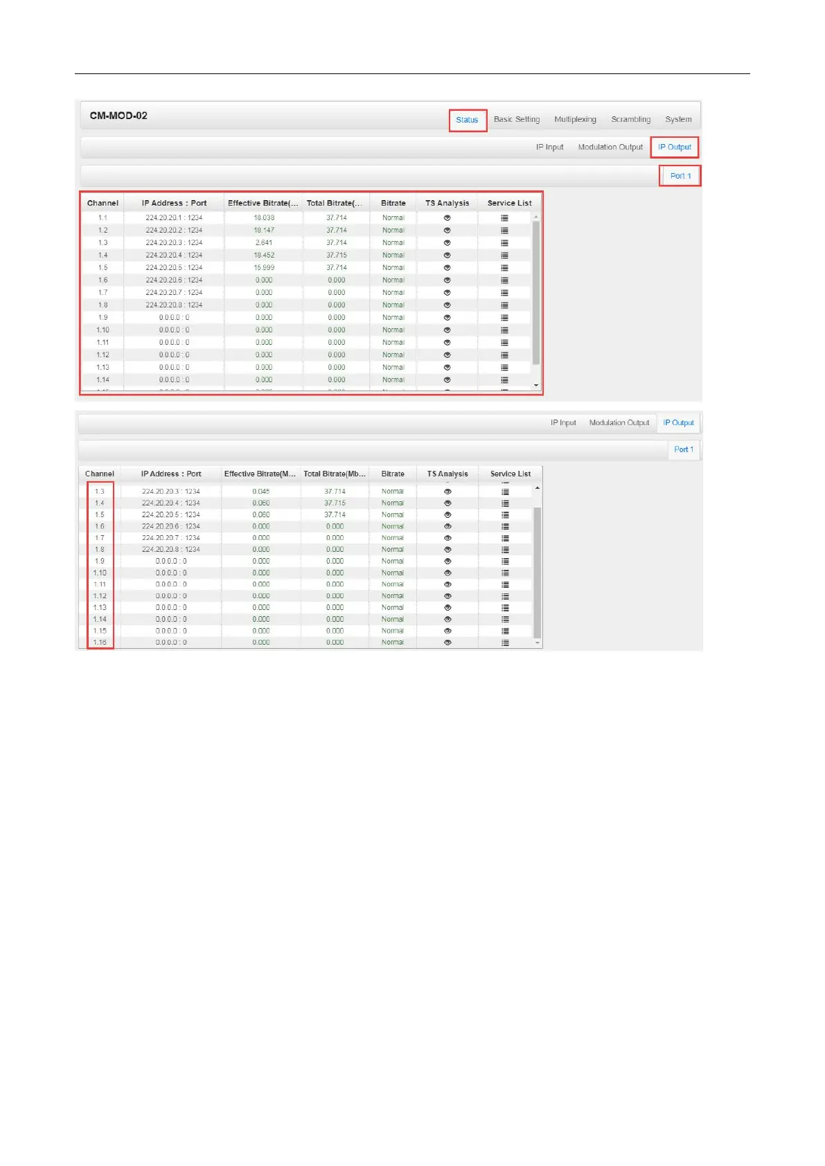 Port 1 and Port 2 have same interface. It shows the 512 channels. Check the box under Enable to