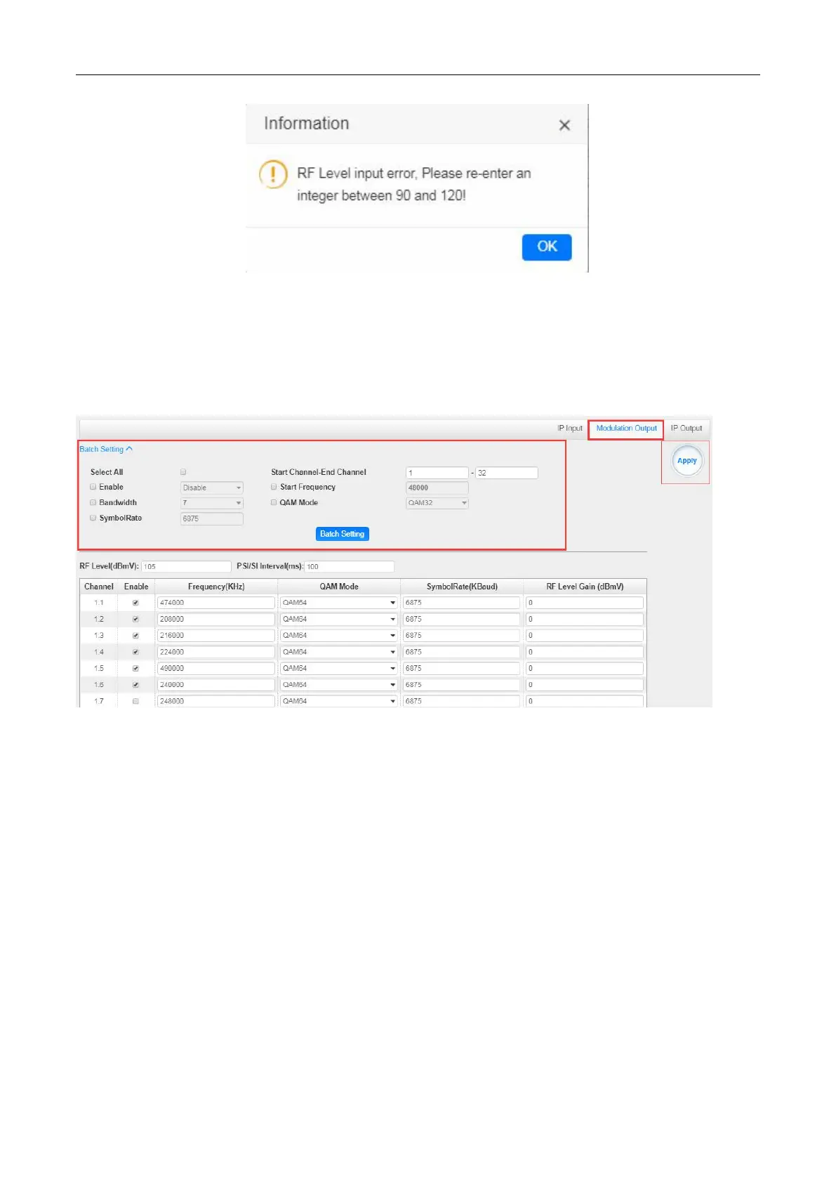 Batch Setting is where you can input the modulation parameters in batch. See the image below for