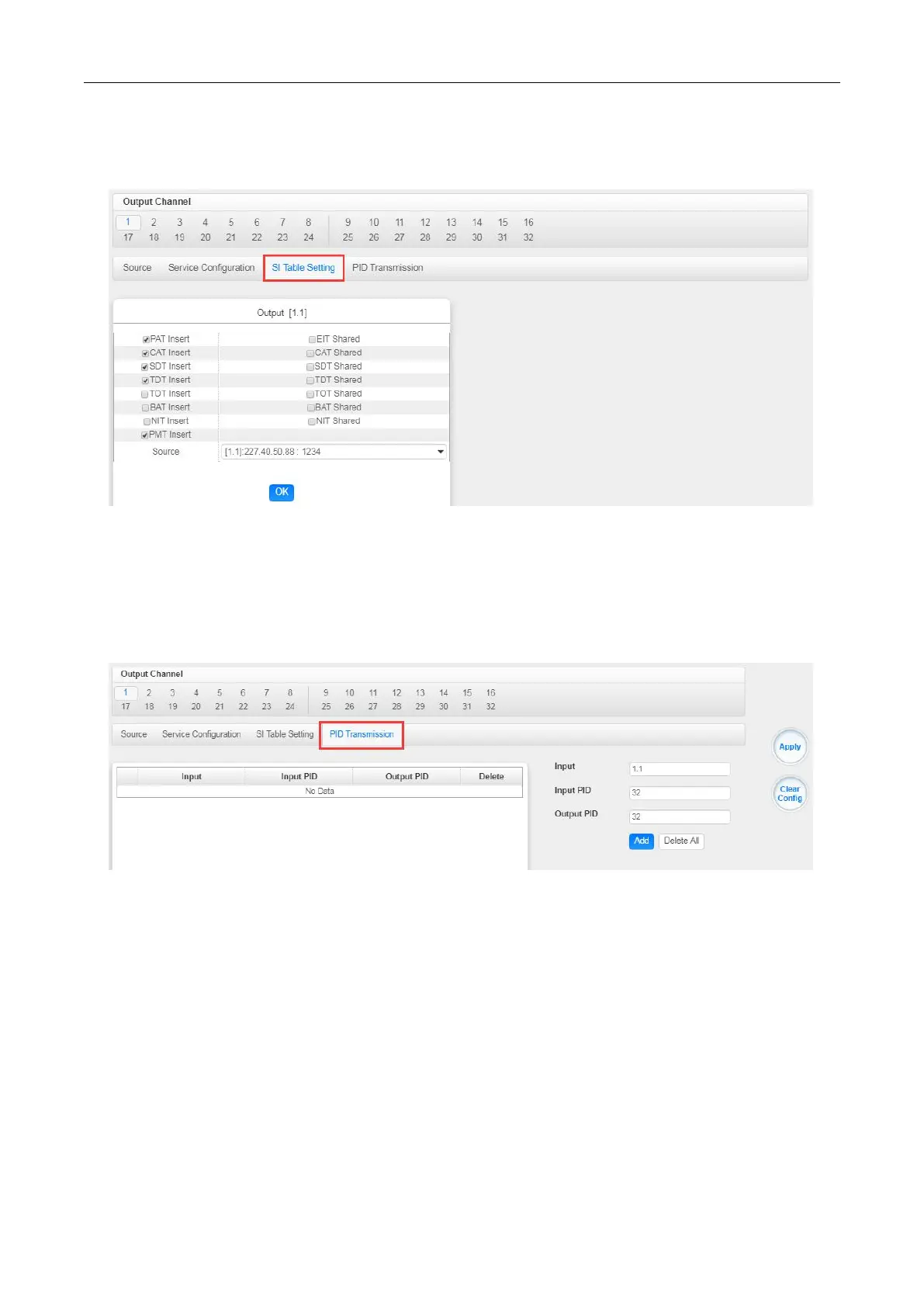 Multiplexing-PID Transmission> This page is to transmit the input PID to Output on the PID