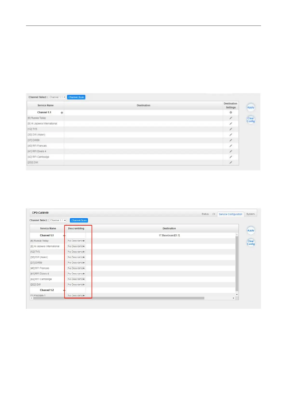 When this module is licensed to descrambe, on this page, you can select the descrambled services
