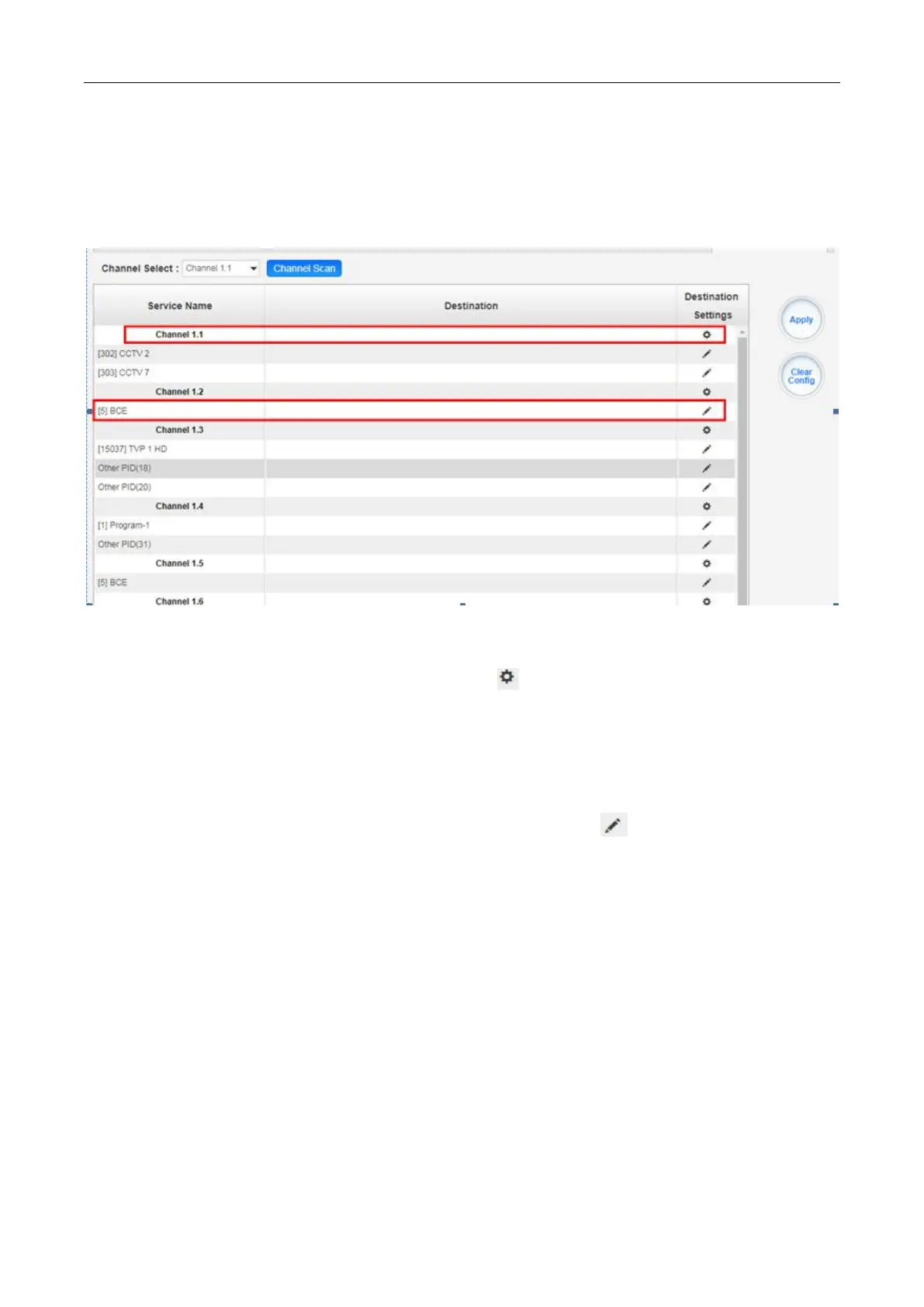Multiplex services: You should click the service line setting icon ( ) to make the certain service