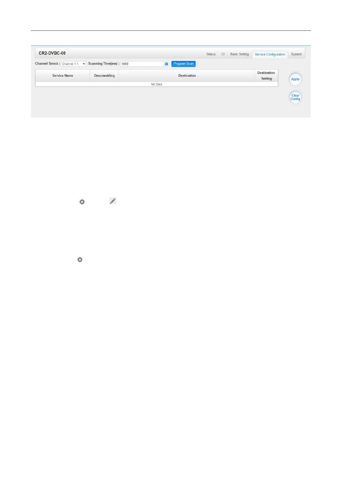 After scanning each channel, you can start to configure the services. You need to click Apply button