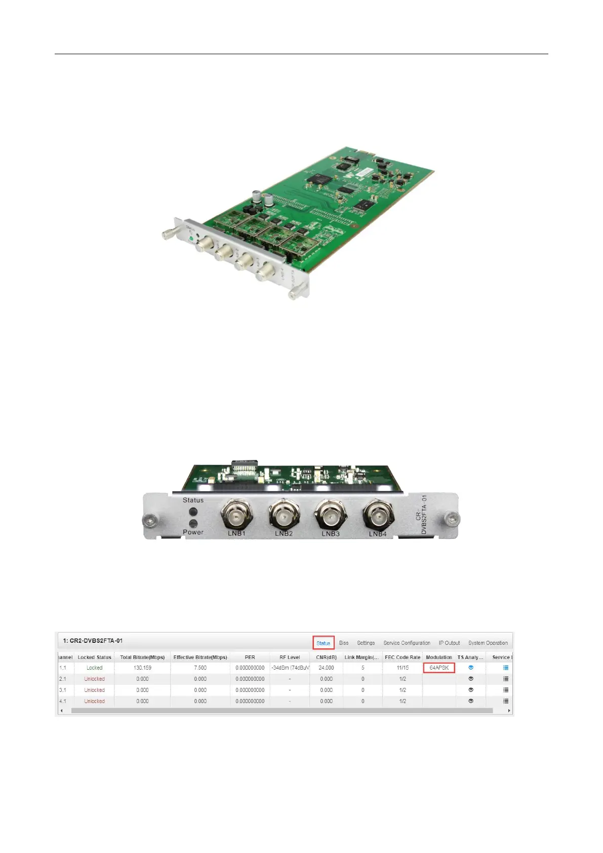 CR2-DVBS2FTA-01 is a 4-channel DVB-S/S2/S2XFTA receiving module with 4 RF connectors, and