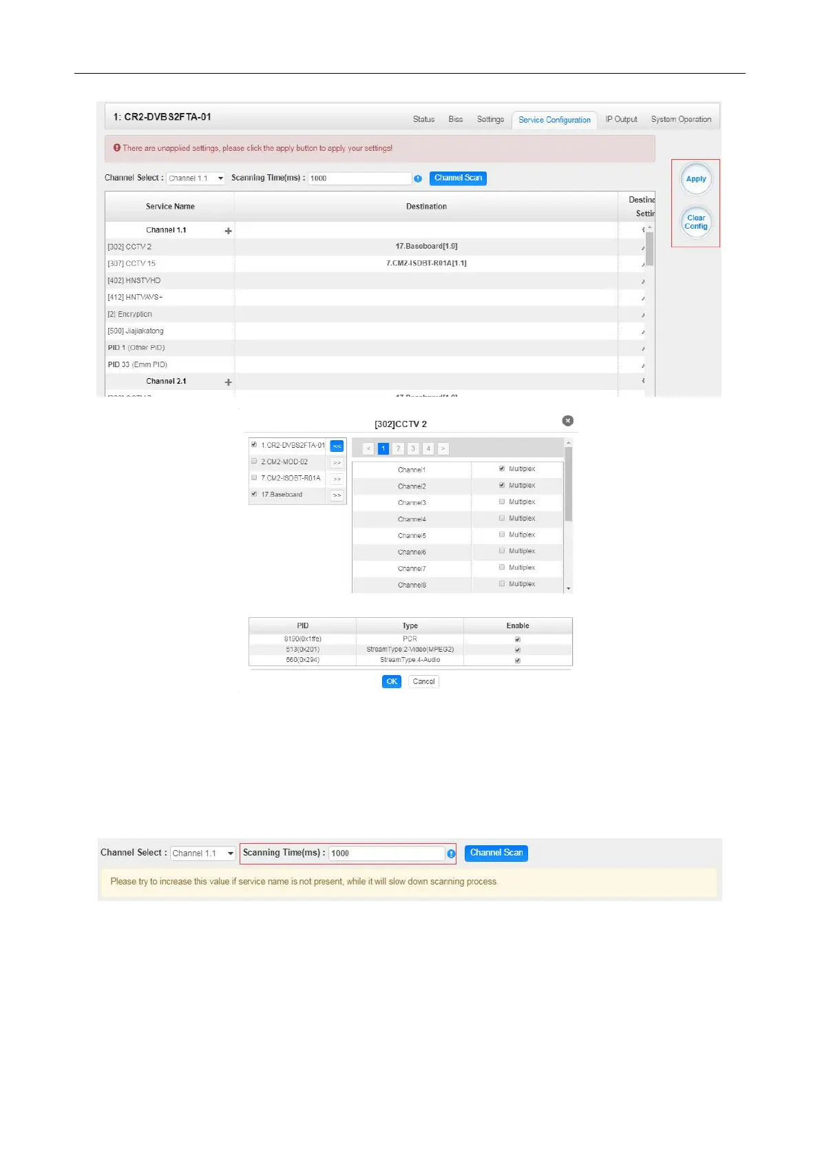 Click Apply or Clear Config button on the right side to make the changes made take effect or clear