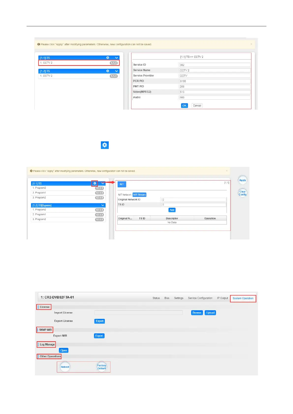 On System Operation page you can import/export License, export SNMP MIB files, Reboot