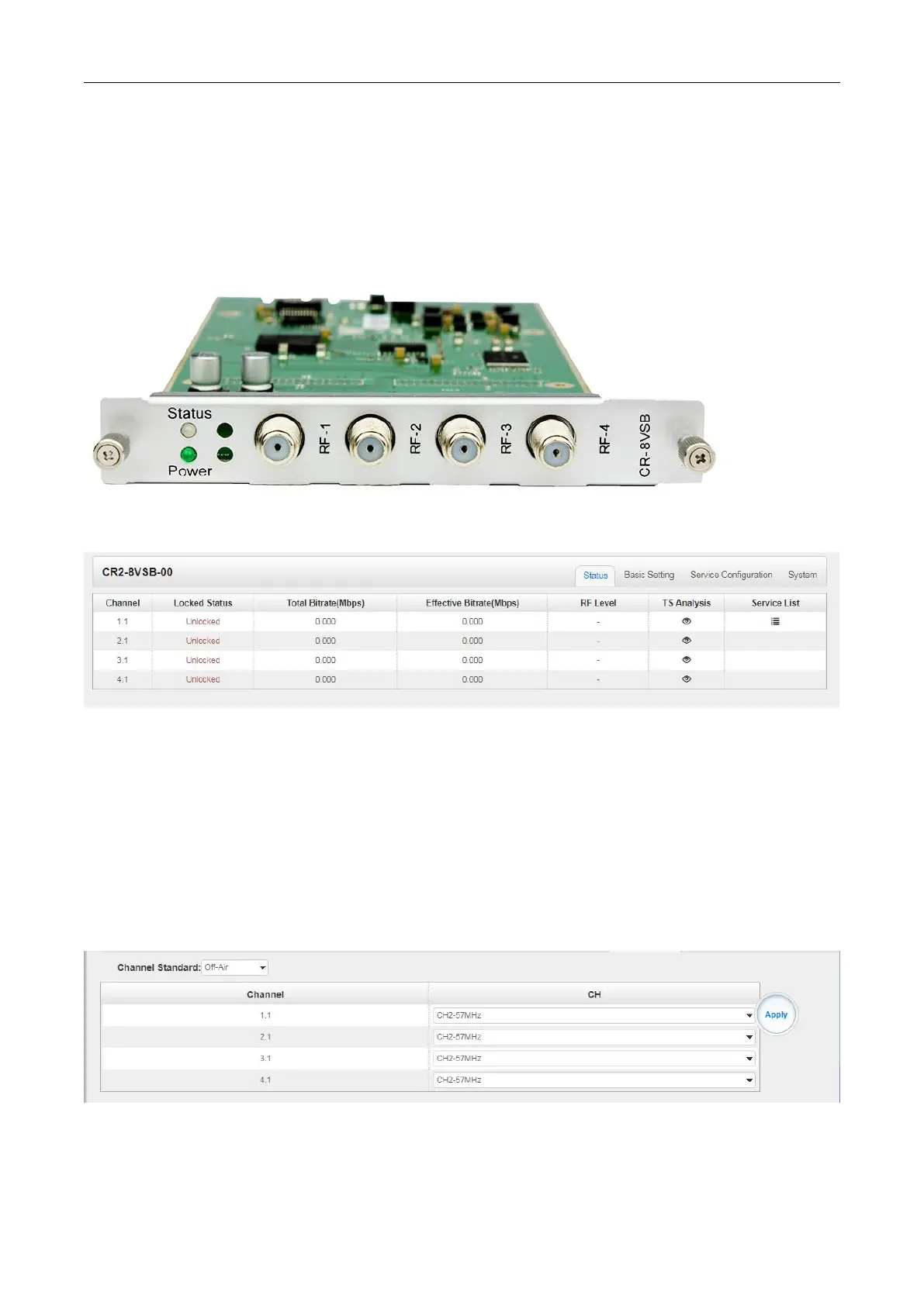 CR2-8VSB-00 is a 4-channel 8VSB receiving module with 4 RF connectors. 8VSB receiver is mainly
