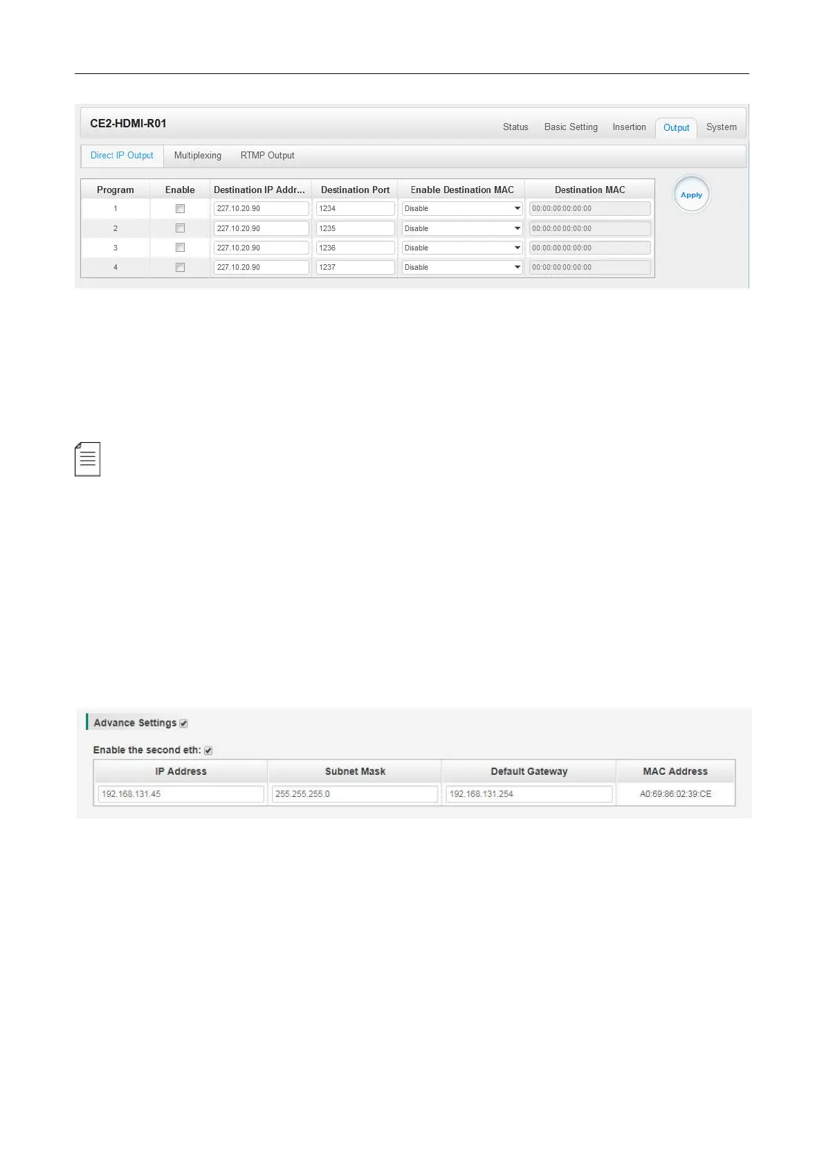 Advance Setting (only available in CE2-HDMI-00):