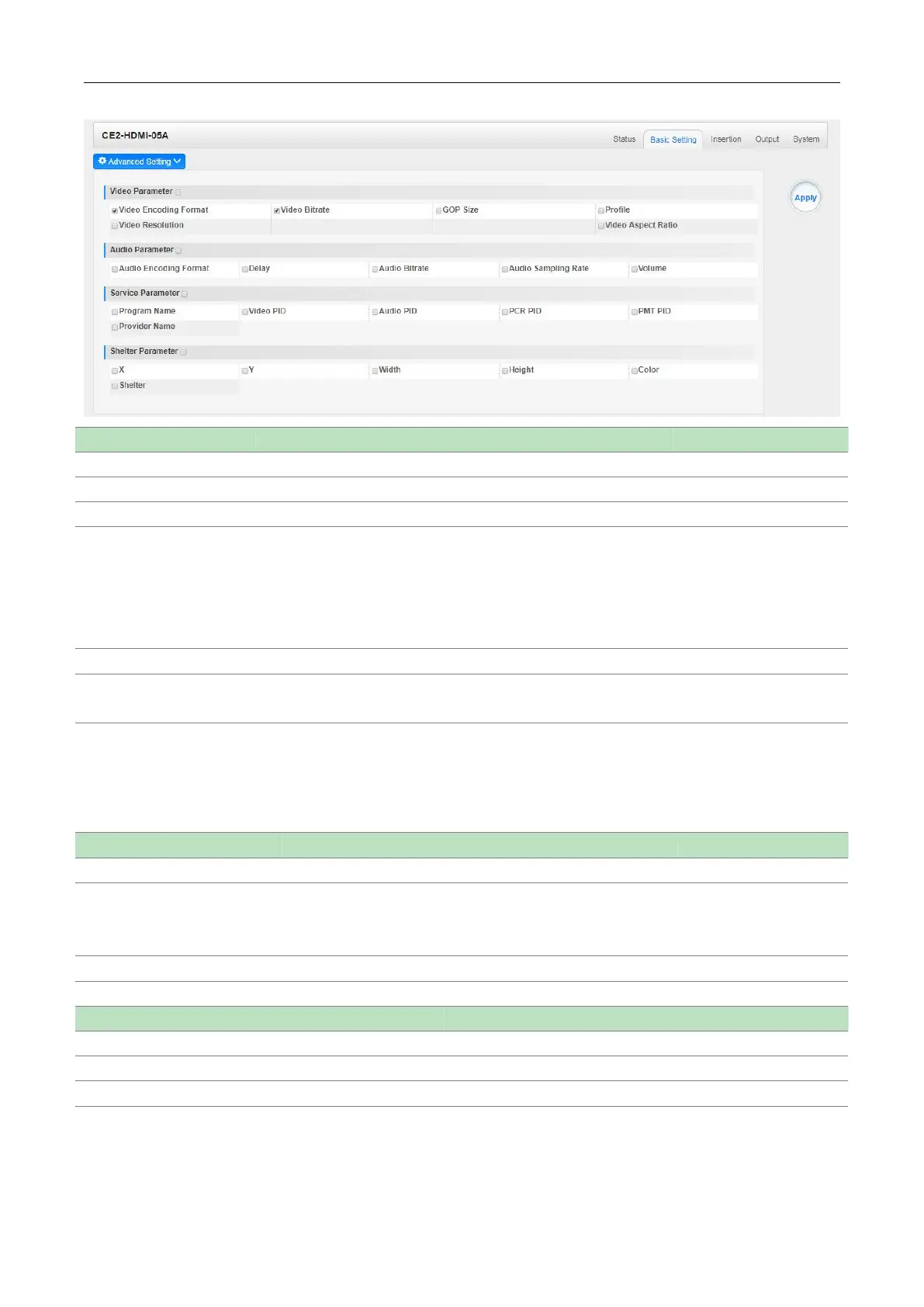 Wellav CMP201D - CE2-HDMI-05 A Basic Settings: Parameter Ranges; CE2-HDMI-05 A Output Settings
