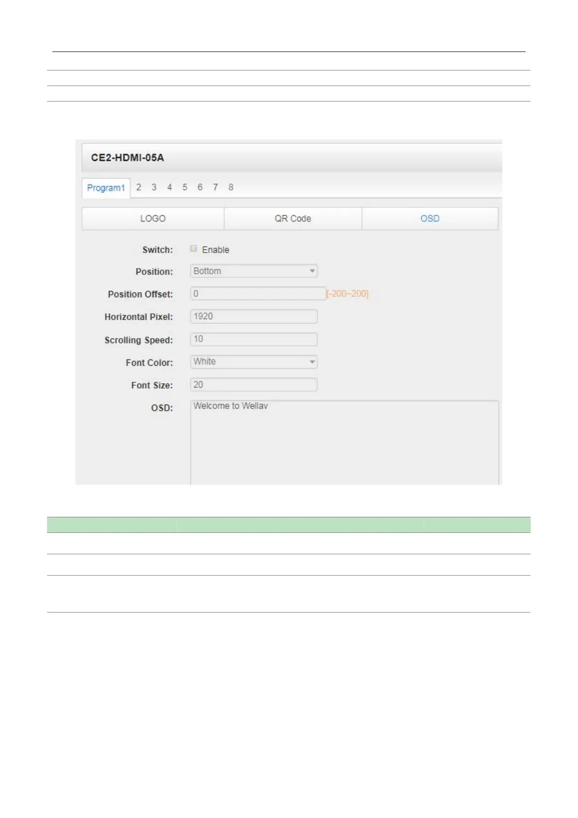 Wellav CMP201D - CE2-HDMI-05 A Insertion: OSD and QR Code Settings
