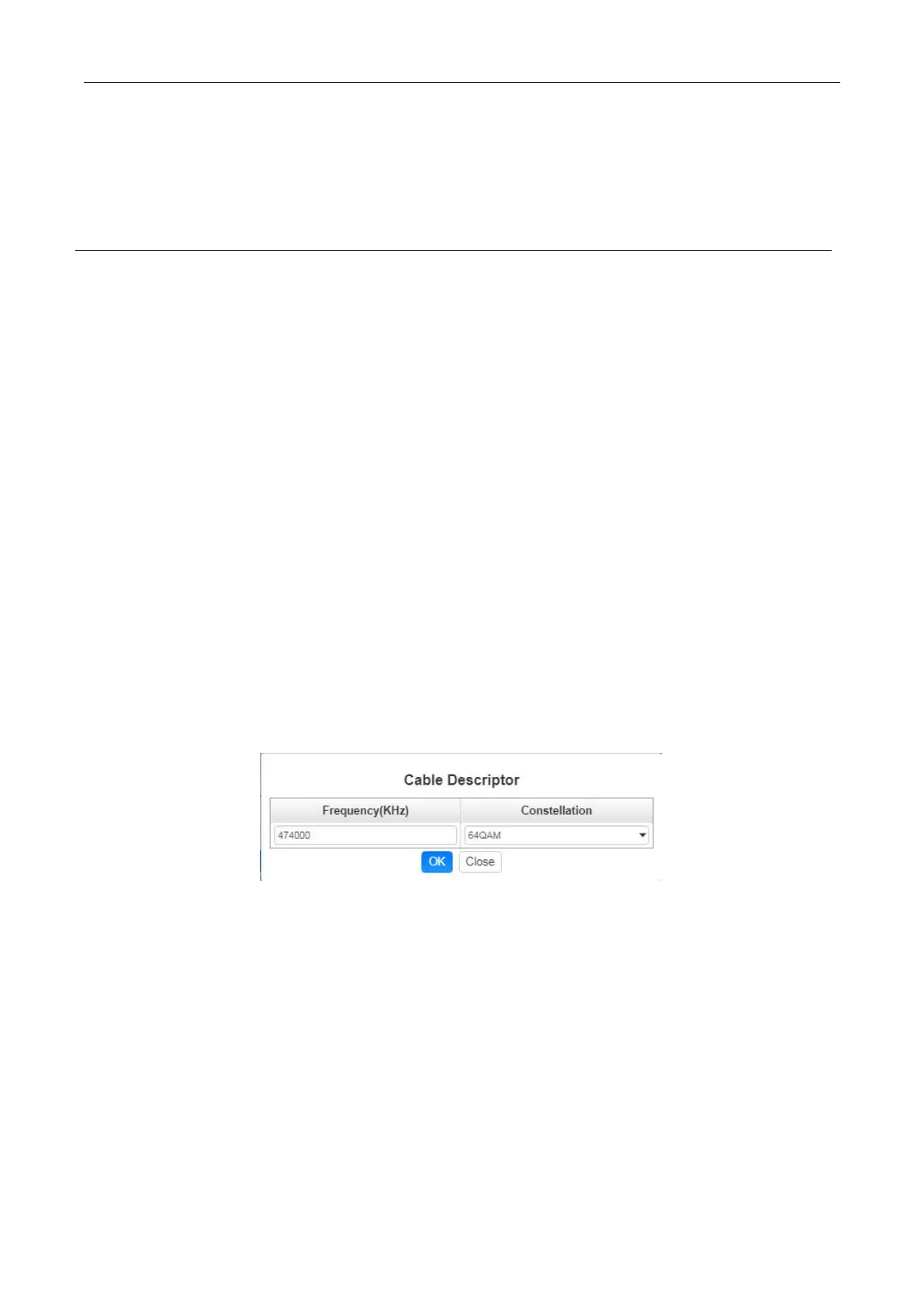 Click +Descriptor and Cable Descriptor. Fill in the correct frequency and symbol rate and