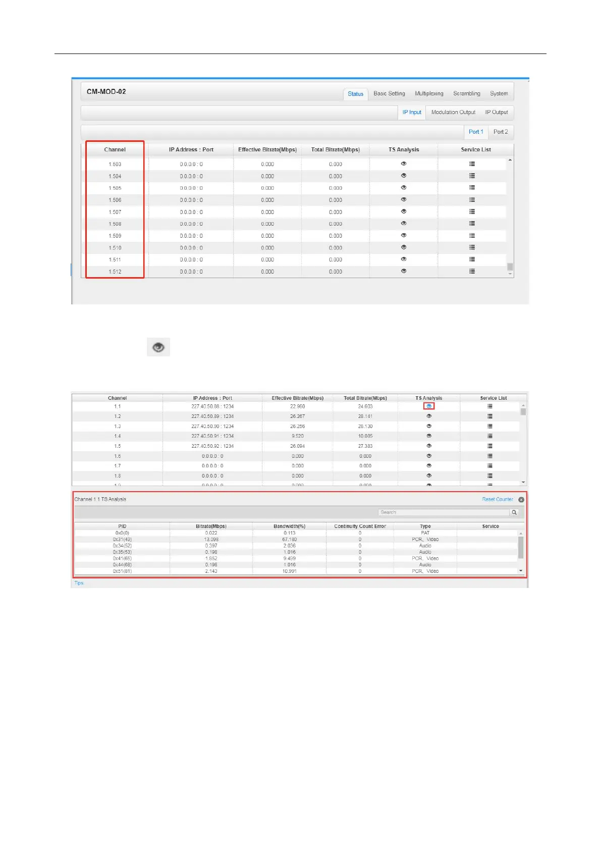 Click the eye icon , users can know all the PIDs such as PAT, CAT, PCR2, Video Audio, PCR2